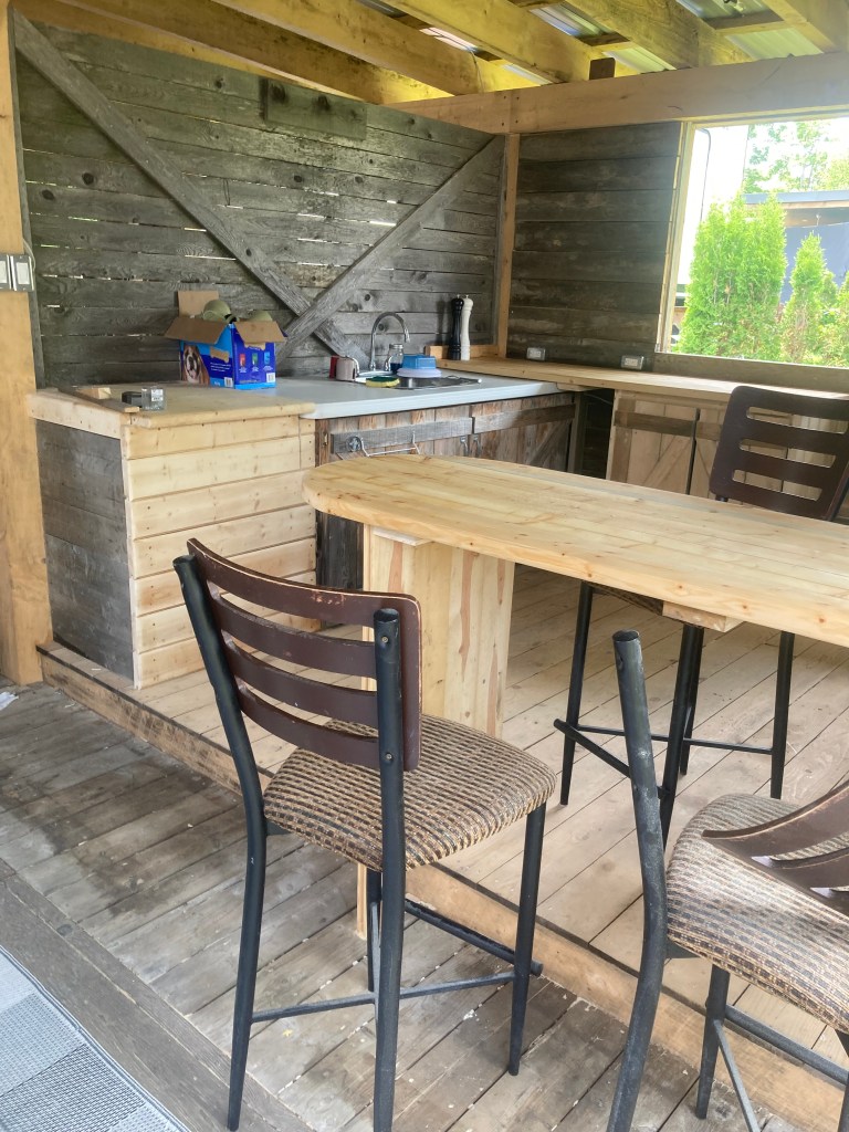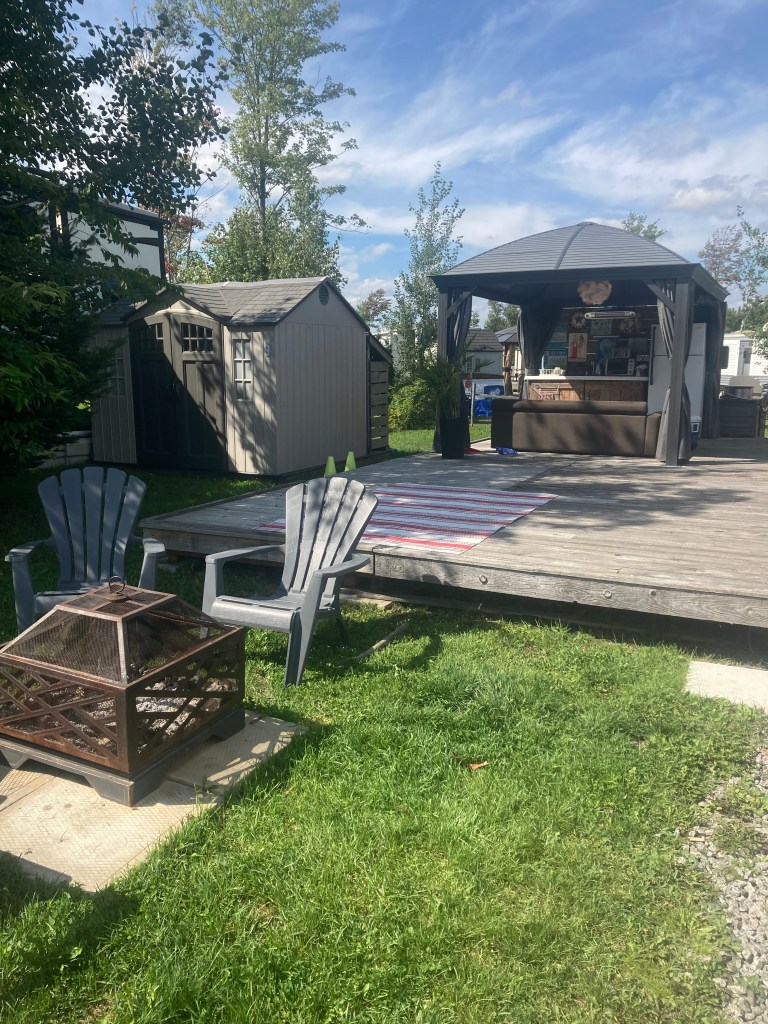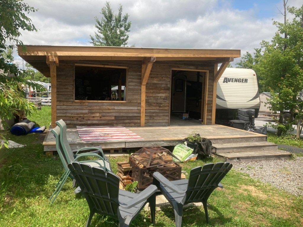 Aménagements de gazebo ou de terrains de camping, cuisines extérieures, cabanon.