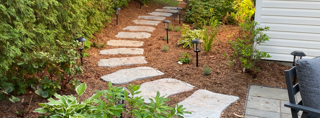 Installation de terrasses en pierre et en bois, aménagements extérieurs.